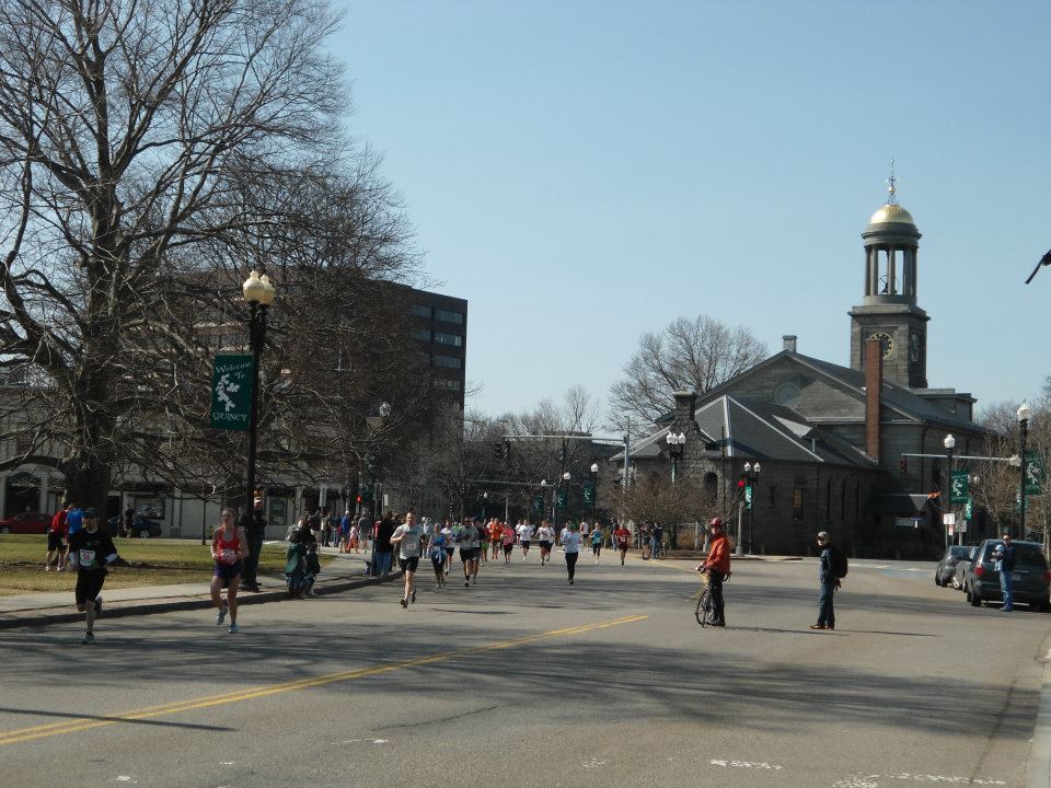 But let’s back up. The night before I drove down to Mass to stay with the awesome Colleen Fit Bee, who lives about 20 minutes from the start (I myself, about 2 hours without traffic). She was a wonderful hostess. I slept well the night before the race. I ate my pre-race breakfast (always a Chocolate Mint Cliff Builder’s bar and an energy drink. Hey, it works for me). We drove out to Quincy High School to pick up our bibs (small race, just over 1400 finishers), use indoor, flushing bathrooms (score!) and wait around in the heated gym/cafeteria. It was a little chilly and windy at the start, but the sun was out.
