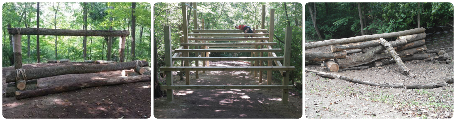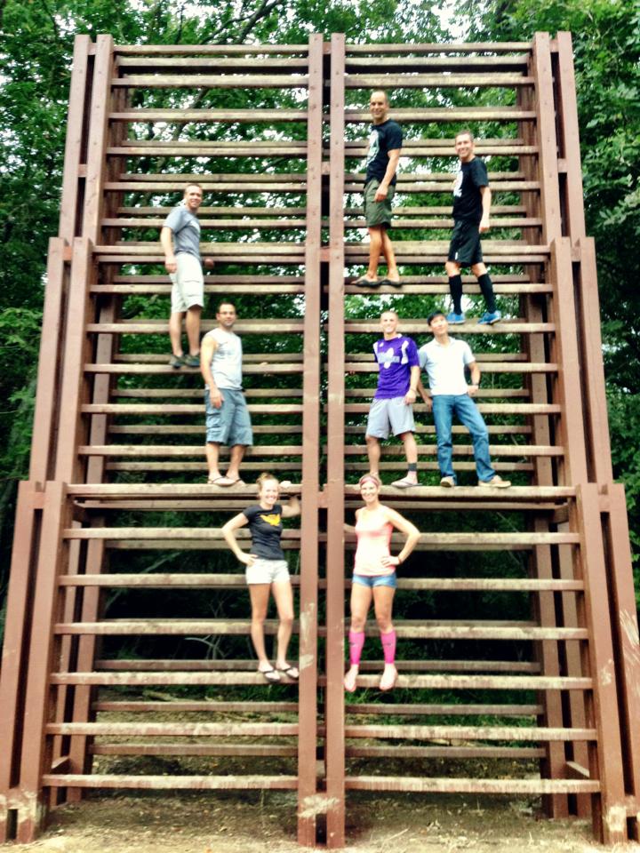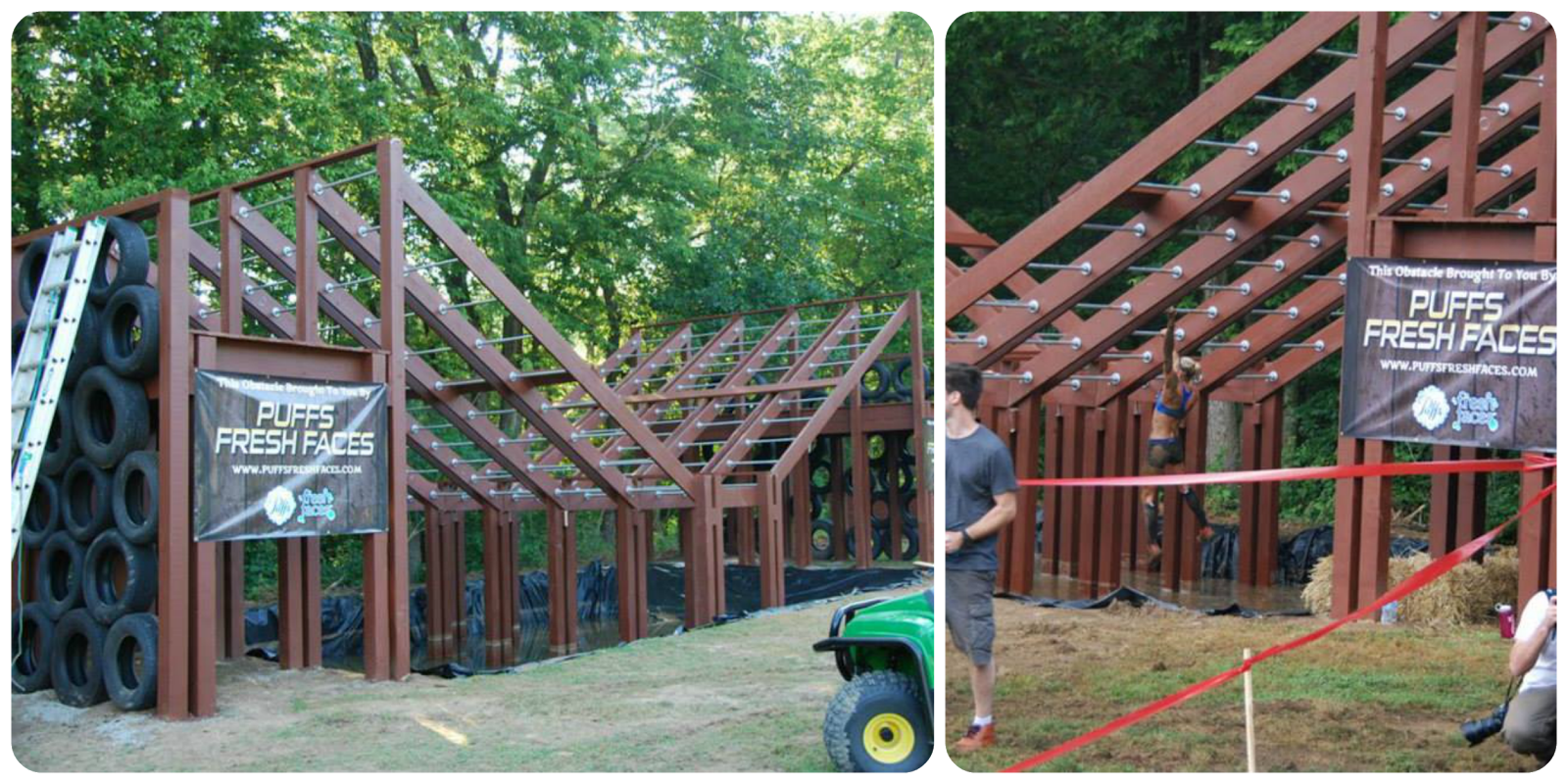I fell off the first set of monkey bars (my hand still has horrible grip since the break) but was starting to finally feel like I was warming up. We circled back around towards the main field where we encountered the “Gauntlet”… a series of insane obstacles, one after another.
