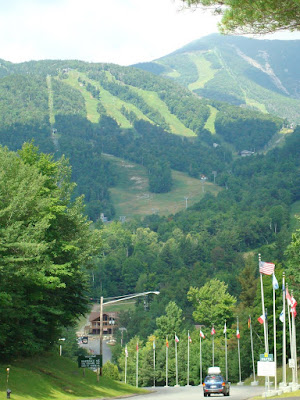 Pictures can not do the Adirondack mountains justice. Lake Placid is simply gorgeous.The drive to NY was as uneventful as a 19 hour trip over 2 days with a 9 month old and almost 3 year old can be. Rowen saw dinosaurs all over the place. Holly and Jim stopped at the only rest stop without bathrooms and had to pee in the woods. We even almost ran over a deer. This is the North East exactly as I remember it! Our cabin, the Red Spruce Lodge , was just perfect, tucked a good 5 miles up a mountain and down dirt roads.