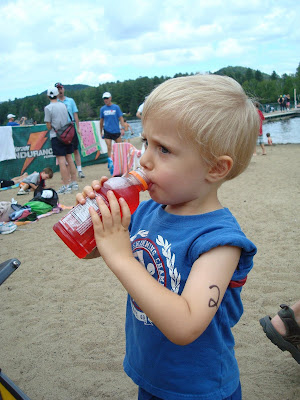 Wow…what a vacation. I have a friend who did that Ironman race and another who went to Lake Placid just to sign up for it for next year. Someday I’d love to train for tri’s again, but alas, I don’t think I will ever have the time. Your kids are very cute with your one son’s body marking and your little one’s IM cowball. When will you do an IM?